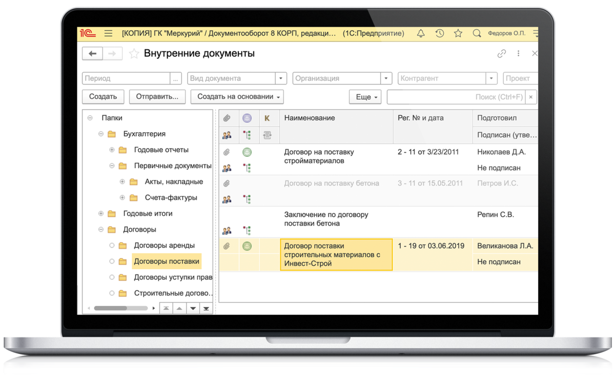 1С: Документооборот 8 – система электронного документооборота (СЭД) - решение для автоматизации документооборота, обеспечивающее полный цикл обработки документов компании.