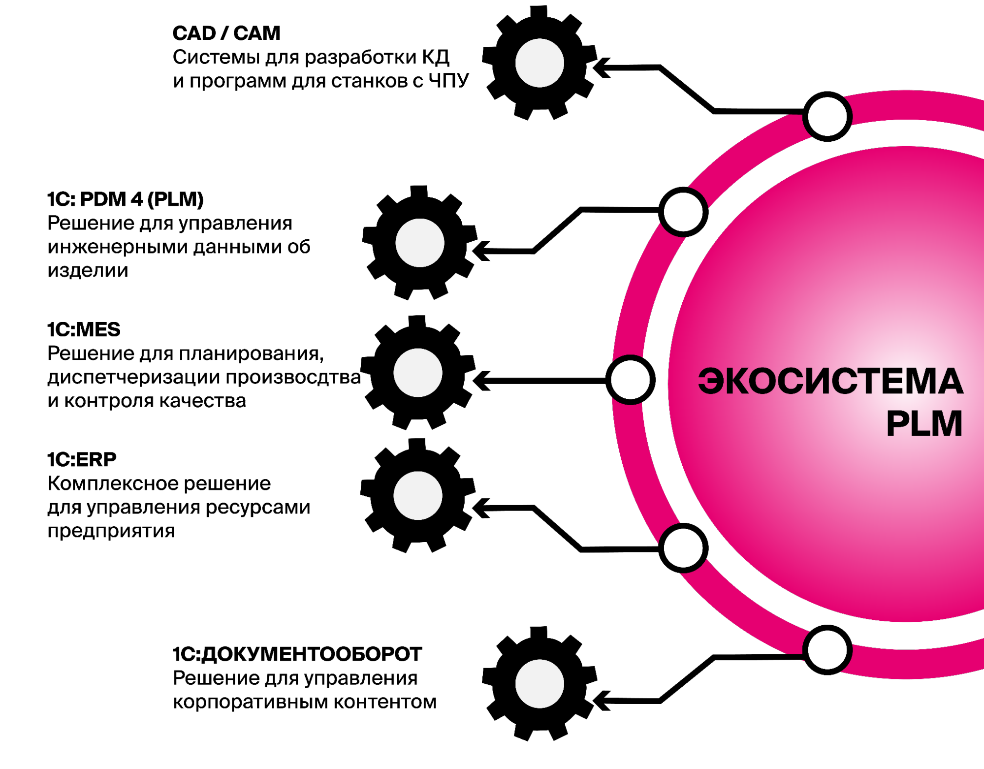 Совместное использование перечисленных ниже программных продуктов позволяет организовать на предприятии единую систему управления жизненным циклом продукта от его разработки до продажи.