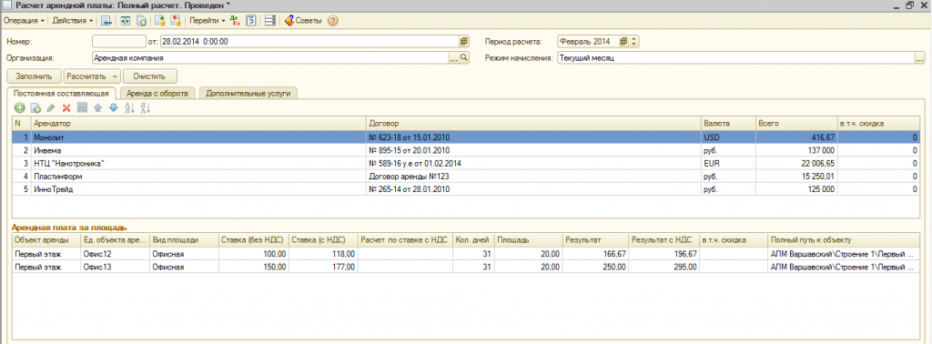 В 2-3 раза сокращение времени на расчет стоимости аренды и создание документов, сопровождающих арендную деятельность (счетов, актов, счетов-фактур)