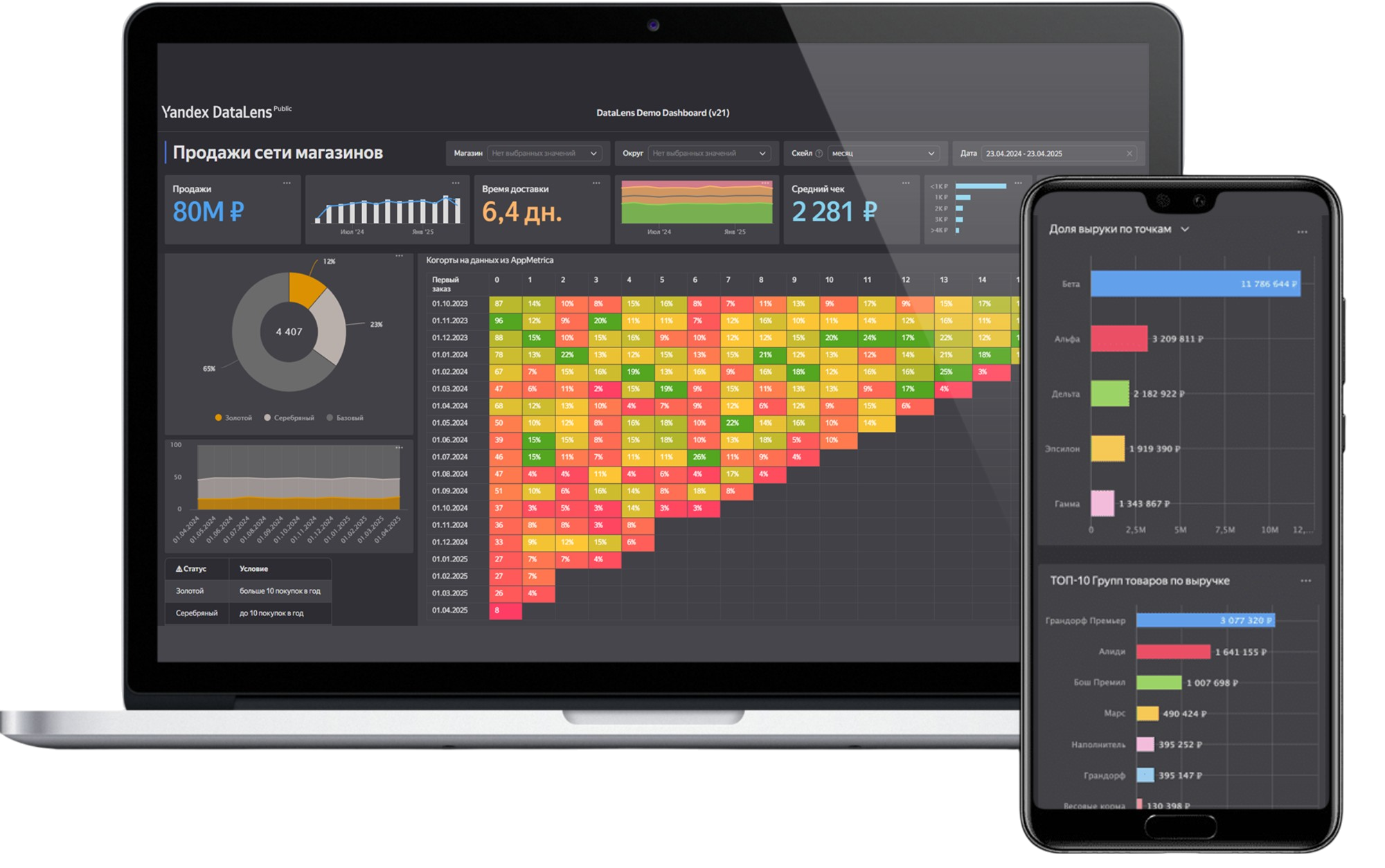 Визуализация данных через кастомизированные дашборды, настройка интерактивных отчетов под специфику ваших процессов и отрасли