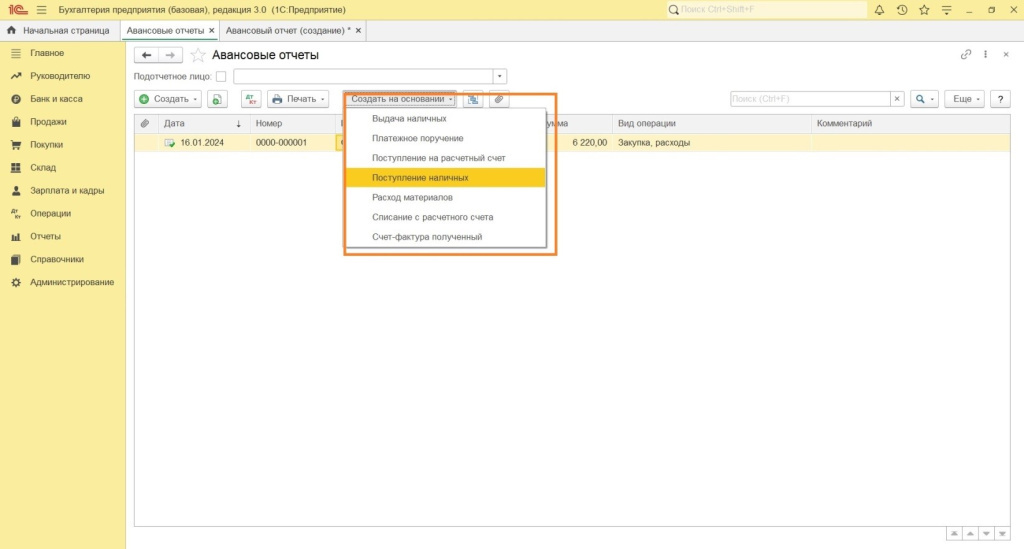Авансовый отчет в 1С 8.3 Бухгалтерия