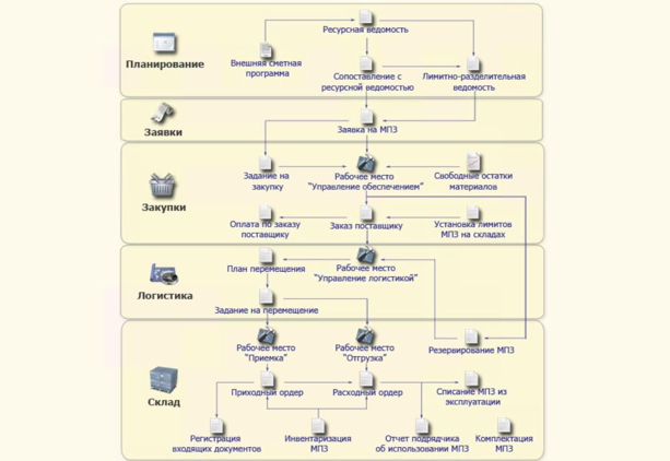 - Планирование материалов и ТМЦ для определенных объектов и работ, а также контроль выполнения планов обеспечения;