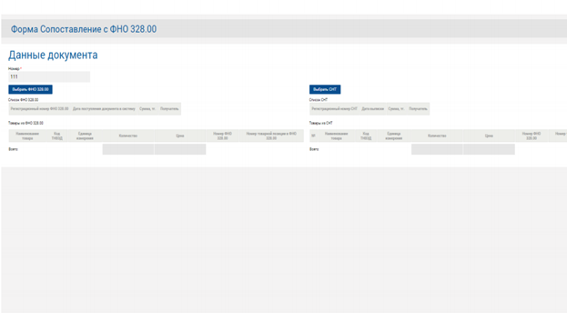 Далее необходимо сопоставить СНТ с ФНО 328. В данных документа находим созданный документ и выбираем его.