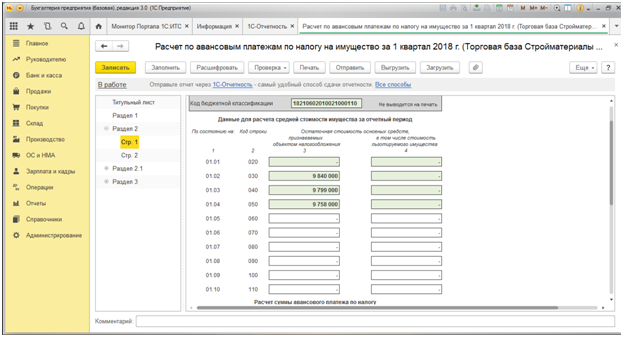 Налог на имущество в 1С 8.3 Бухгалтерия
