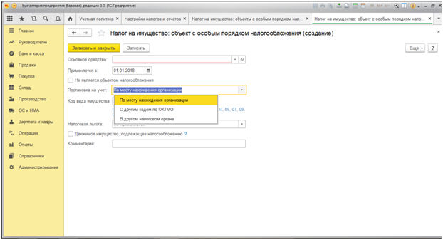 Налог на имущество в 1С