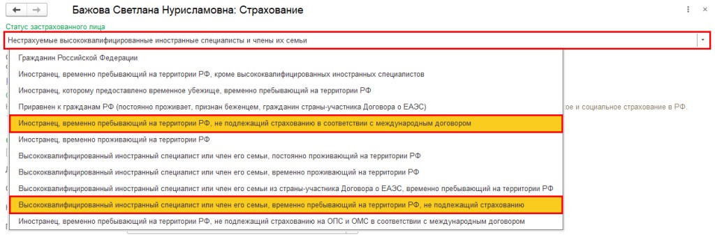 • новый статус — «Высококвалифицированный иностранный специалист или член его семьи, временно пребывающий на территории РФ, не подлежащий страхованию».