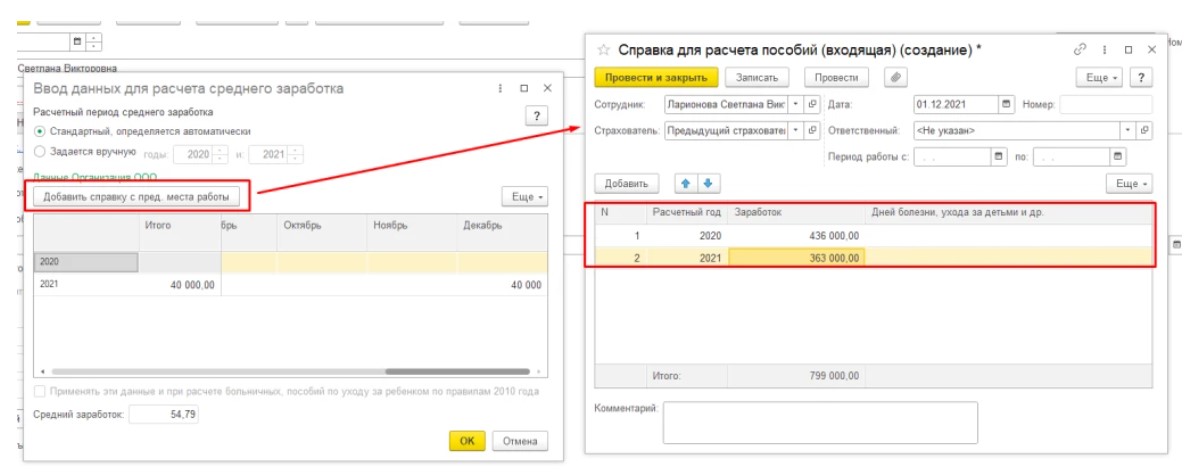 «Больничный лист» не переносится со сведениями для расчёта среднего заработка. Разберем ситуацию на примере.