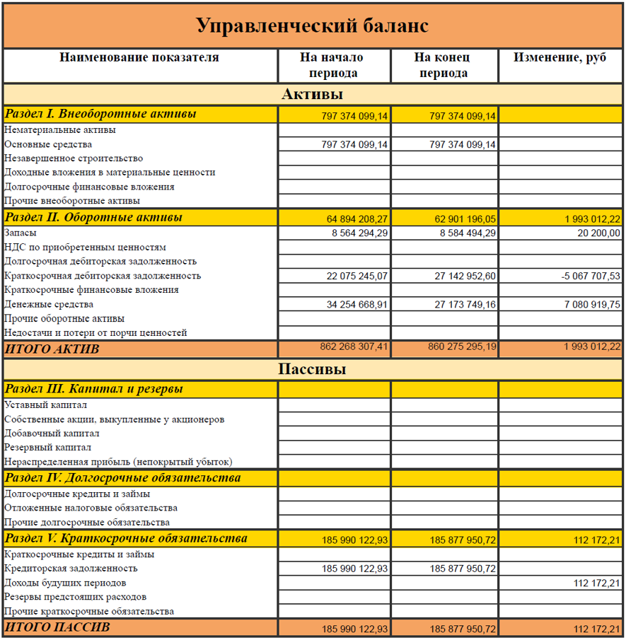 Состав управленческого баланса: