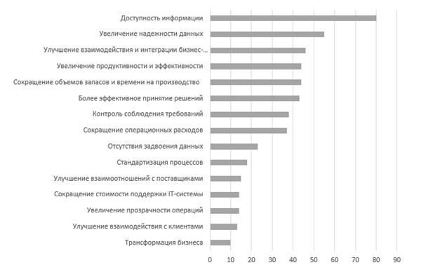 Компании, реализовавшие ERP-проекты, отмечают ряд выгод, которые они получили от внедрения.