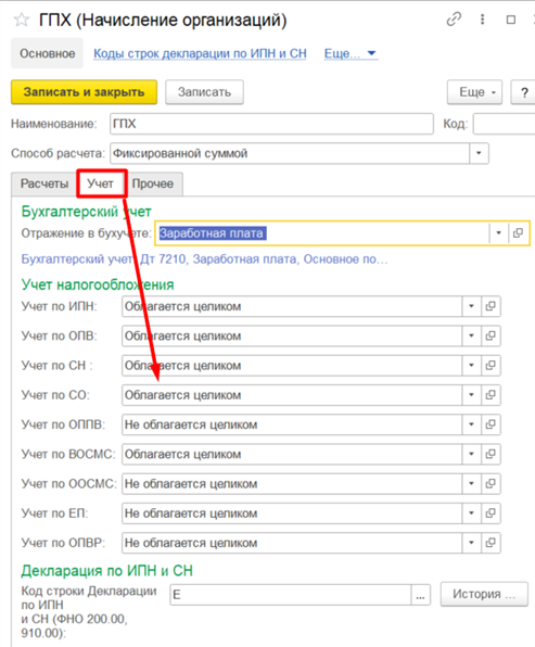 - Настроить порядок налогообложения у вида дохода.