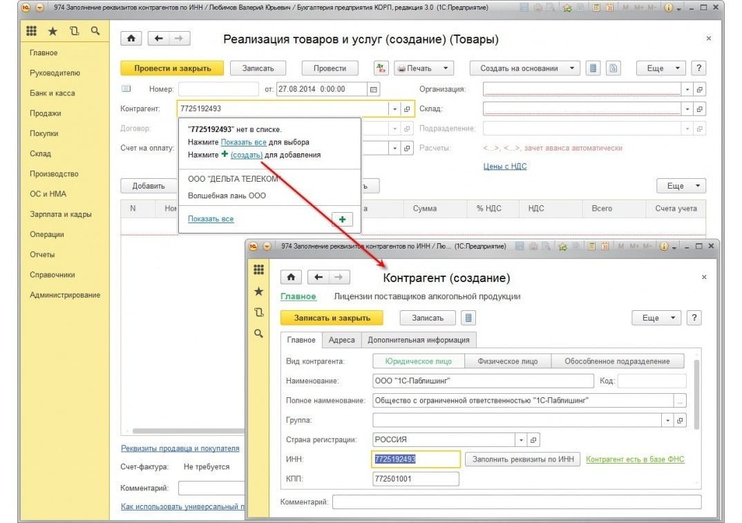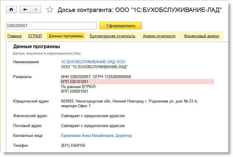 При наличии договора ИТС уровня ПРОФ подключим сервис 1С:Контрагент бесплатно.